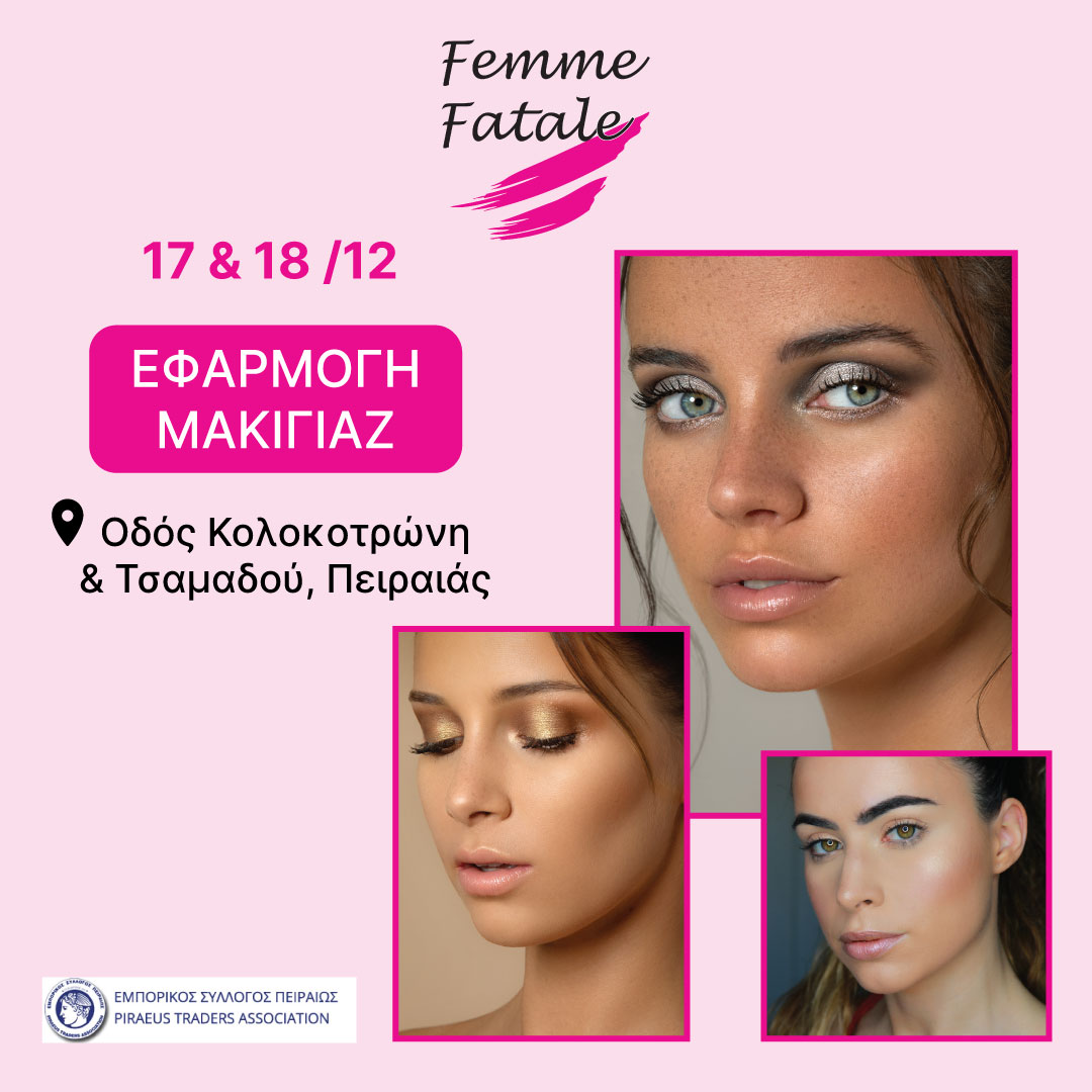 Το εξειδικευμένο προσωπικό των 𝐅𝐞𝐦𝐦𝐞 𝐅𝐚𝐭𝐚𝐥𝐞 θα μοιραστεί μαζί σας Μake Up Tips, Trends Techniques για να λάμψετε στα Ρεβεγιόν των Γιορτών ❣️❣️❣️ Θα σας περιμένουν και πολλές άλλες εκπλήξεις!