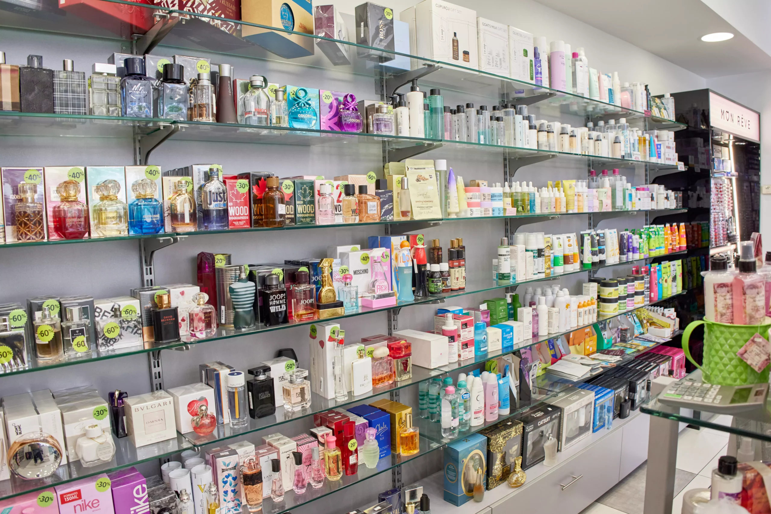 Στο Femme Fatale Καλλιθέας θα βρεις καλλυντικά προϊόντα, όπως Επώνυμα Αρώματα, Προϊόντα Μακιγιάζ, Νυχιών & Μαλλιών γνωστών εταιρειών με αναγνωρισμένη ποιότητα, σε πολύ ανταγωνιστικές τιμές και εκπτώσεις που φτάνουν έως και 70% όλο το χρόνο σε 2 επίπεδα.