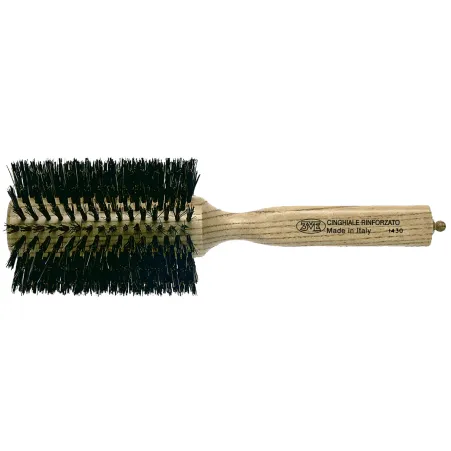 3VE βούρτσα μαλλιών για πιστολάκι με τρίγωνη λαβή. Ο κορμός είναι φτιαγμένος από ξύλο φλαμουριάς ενώ οι τρίχες είναι ειδικά επεξεργασμένες για να αντέχουν την υψηλή θερμοκρασία και προέρχονται από αγριόχοιρο. Στο πίσω μέρος της λαβής υπάρχει ξύλινος διαχωριστής που βοηθάει αρκετά κατά το ίσιωμα (δημιουργία χωρίστρας).
