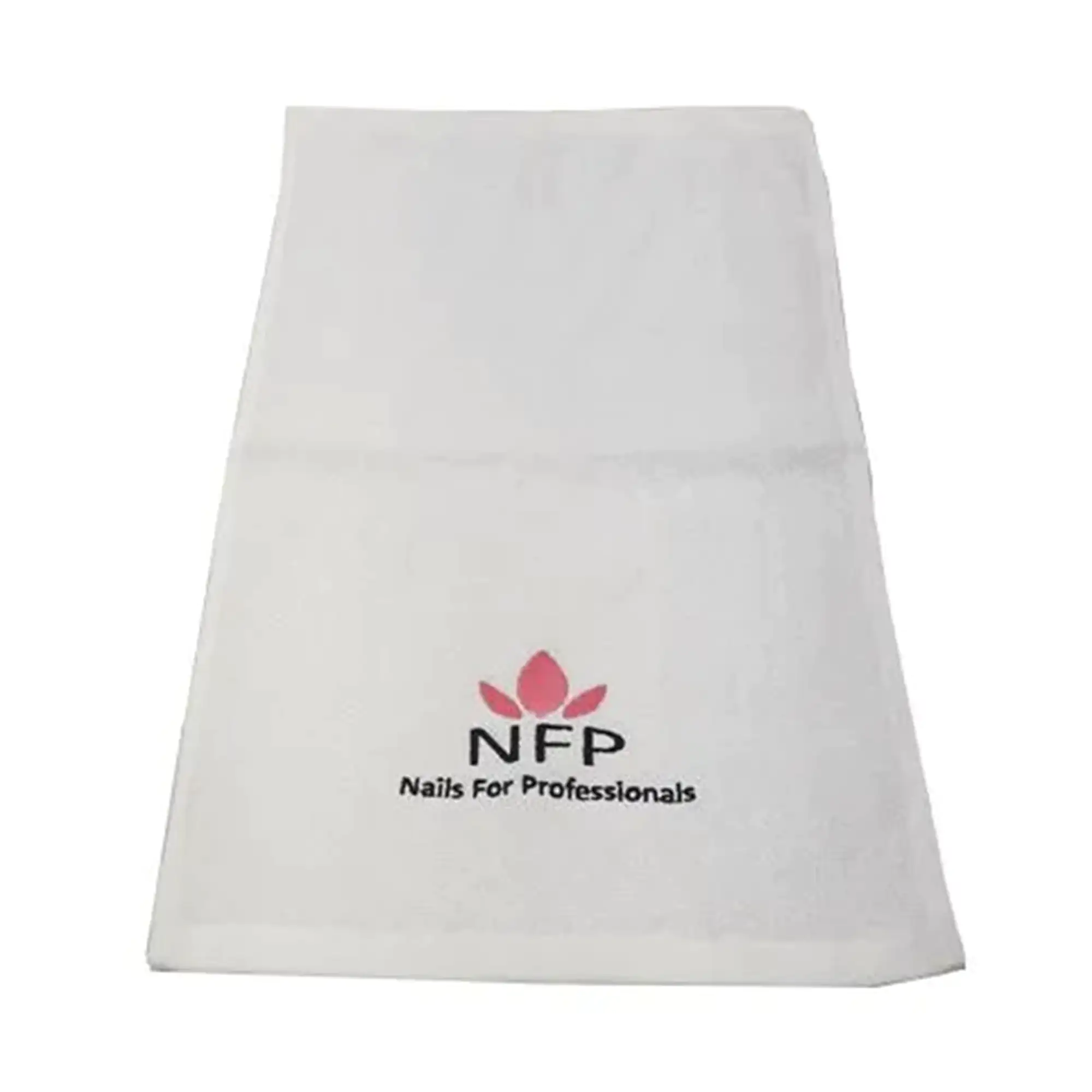 Βαμβακερή Πετσέτα NFP σε ιδανική διασταση για χέρια και πόδια (μανικιούρ & πεντικιούρ). Λευκή με το λογότυπο της εταιρείας NFP. Διαστάσεις 30×50.