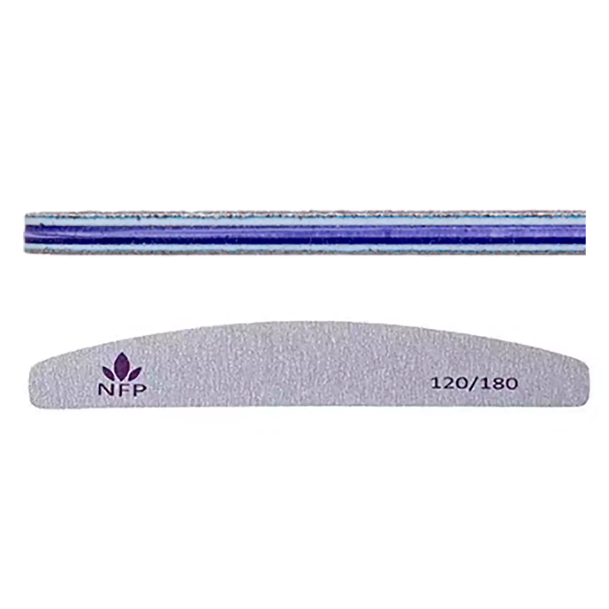 Η NFP Λίμα Half Moon Γκρι 120-180 είναι επαγγελματική λίμα νυχιών με γκρι χρώμα, σχήμα moon και δυο διαφορετικές τραχύτητες. Η NFP Λίμα Half Moon Γκρι 120-180 είναι κατάλληλη για το μανικιούρ, το πεντικιούρ, το λιμάρισμα και το σχηματισμό νυχιού μετά από τεχνική εργασία.
