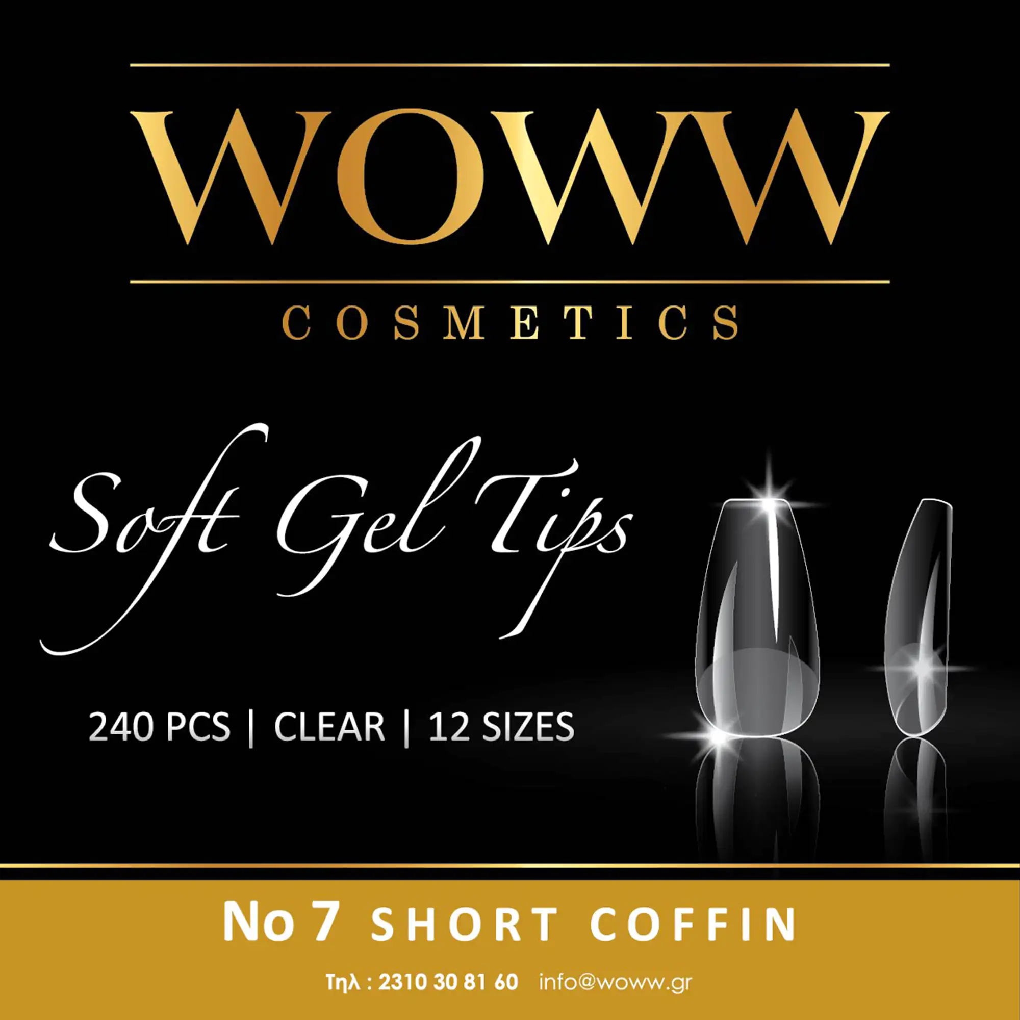 Soft Gel Tips Woww No7 Short Coffin 240 τεμάχια