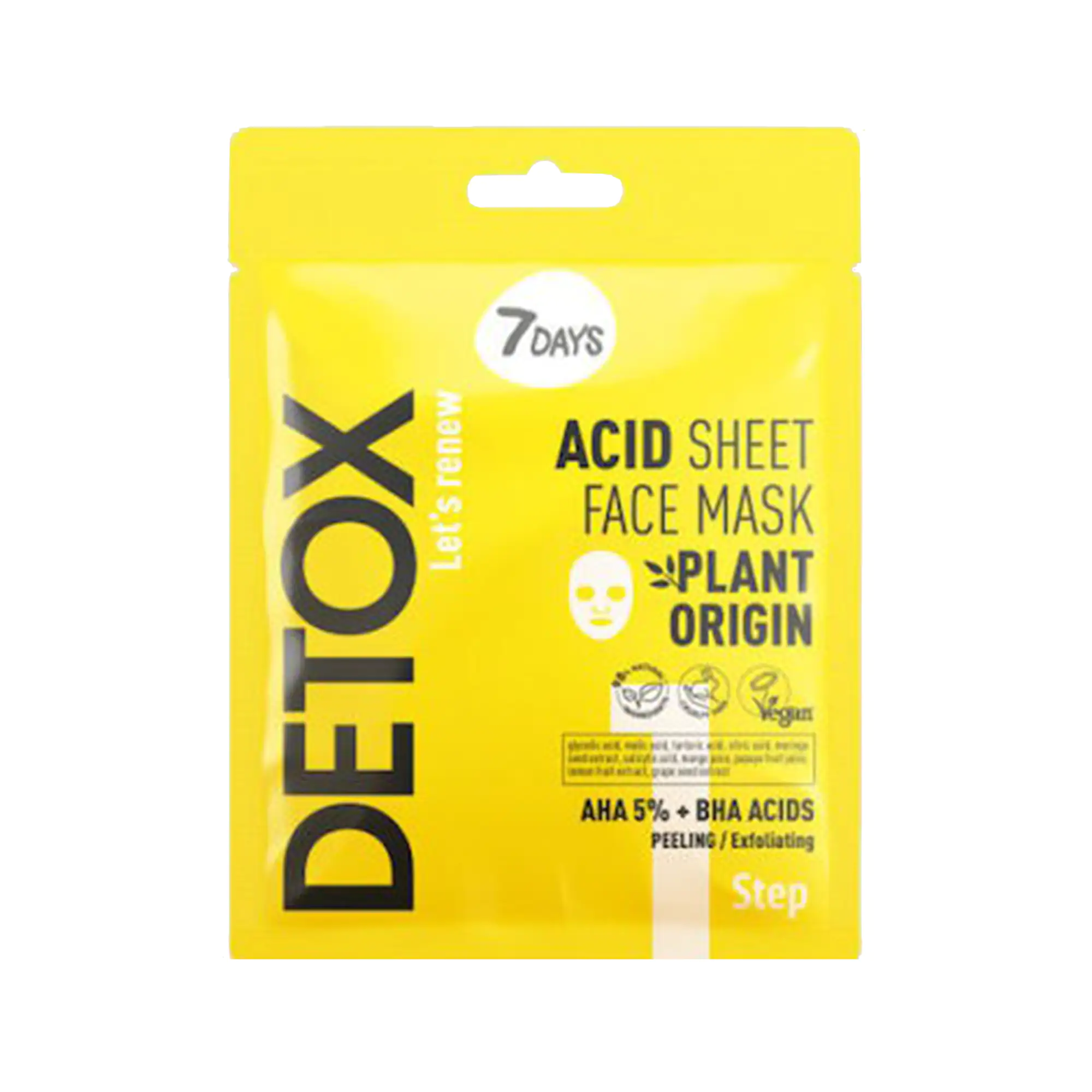 Η μάσκα προσώπου σε φύλλο Detox Acid Step 1 της 7days, προσφέρει βαθιά απολέπιση,