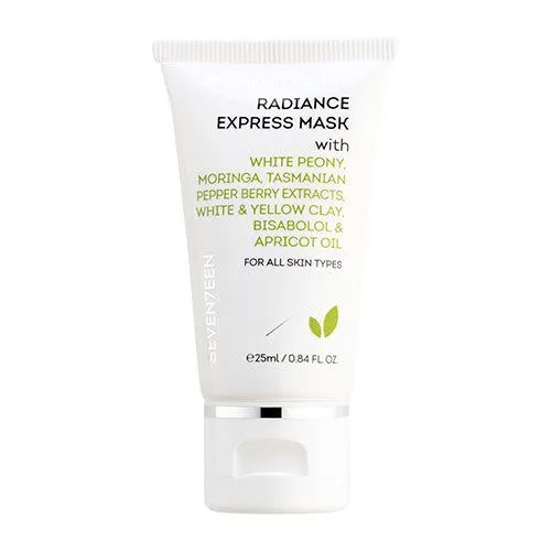 Η Seventeen Radiance Express Mask είναι μια μάσκα λάμψης και αναγέννησης με εκχυλίσματα λευκής παιώνιας, moringa, πιπέρι τασμανίας, άσπρη και κίτρινη άργιλο, bisabolol και έλαιο βερύκοκου. Η Seventeen Radiance Express Mask καθαρίζει την επιδερμίδα από το σμήγμα και τους ρύπους ηρεμώντας έτσι τις κοκκινίλες και κάνοντας ξανά την όψη και την υφή της επιδερμίδας σου λεία και μεταξένια. Βάλε την Seventeen Radiance Express Mask στην ρουτίνα σου και απόλαυσε λαμπερή και ανανεωμένη επιδερμίδα. Ανανεώνει και επαναφέρει τη λάμψη και την απαλή υφή και είναι κατάλληλη για όλες τις επιδερμίδες. Περιποιήσου την επιδερμίδα σου και νιώσε σαν να χάρισες στον εαυτό σου ώρες περιποίησης!