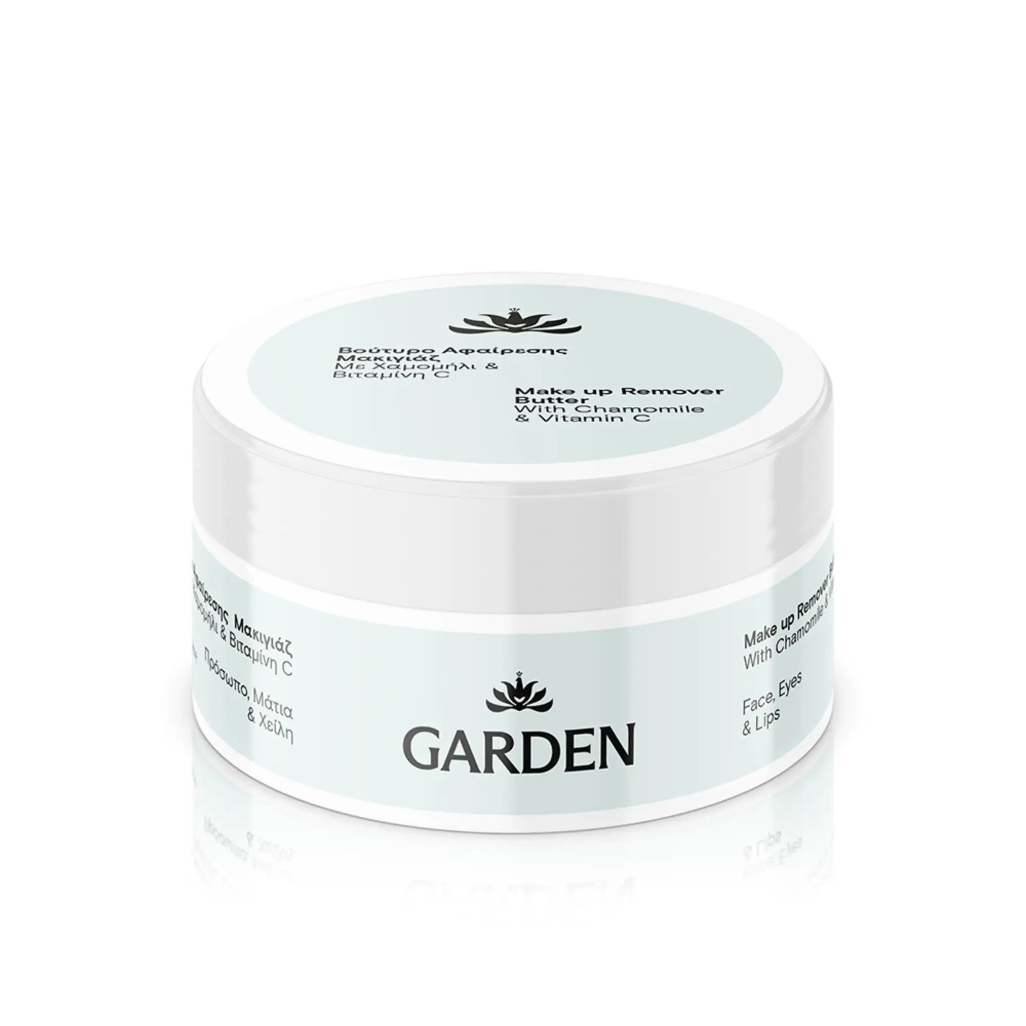 Το βούτυρο αφαίρεσης μακιγιάζ με χαμομήλι, βιταμίνη C και βούτυρο καριτέ της Garden αφαιρεί αποτελεσματικά ρύπους, αδιάβροχο μακιγιάζ και μακιγιάζ με αντηλιακά φίλτρα. Ο συνδυασμός χαμομηλιού και βουτύρου καριτέ προσφέρει θρέψη και απαλότητα, ενώ η βιταμίνη C και Ε, αντιοξειδωτικοί παράγοντες, χαρίζουν λάμψη. Η ειδική, χωρίς άρωμα σύνθεση είναι ιδανική και για ευαίσθητες επιδερμίδες προσφέροντας φροντίδα κι ενυδάτωση από την πρώτη κιόλας εφαρμογή. Με την καθημερινή εφαρμογή, η επιδερμίδα αποκτά βελτιωμένη ελαστικότητα και πιο φωτεινή όψη.