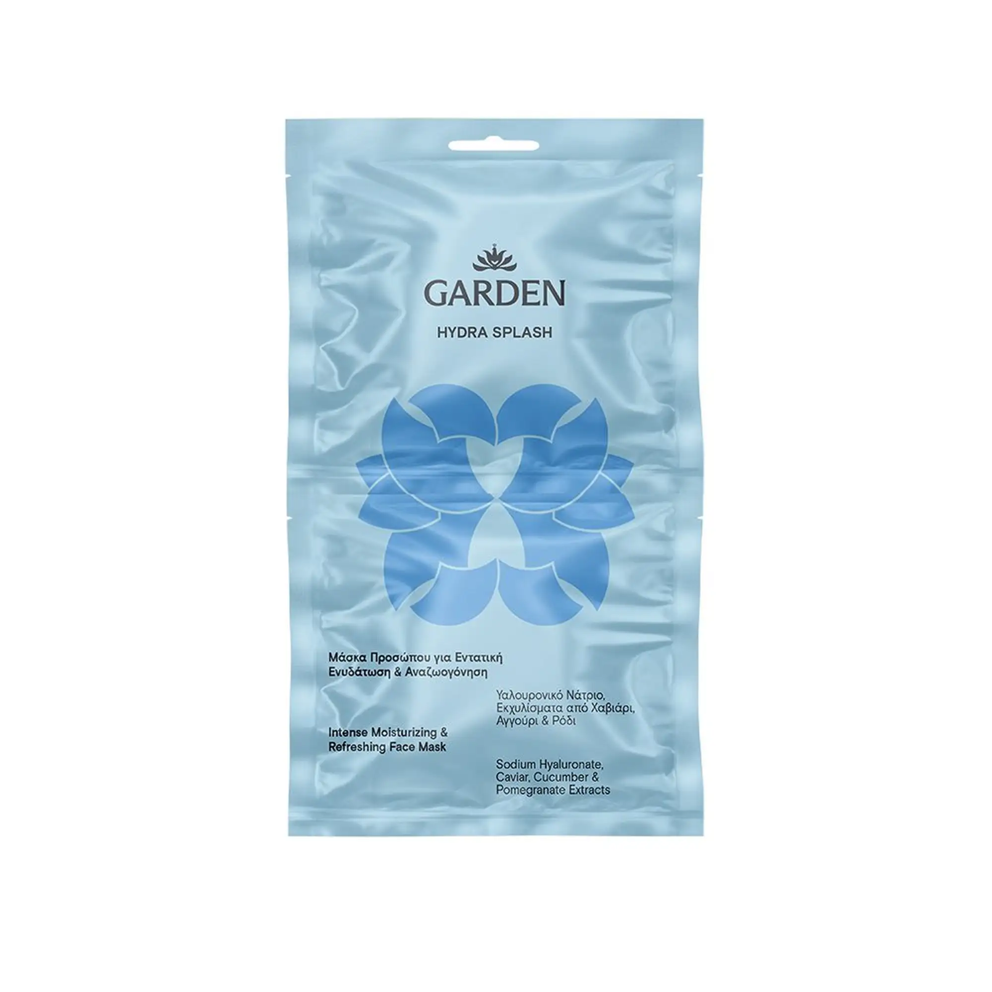 Η Garden Hydra Splash Intense Moisturizing & Refreshing Face Mask είναι μία μάσκα προσώπου για εντατική ενυδάτωση και αναζωογόνηση με υαλουρονικό νάτριο, χαβιάρι, αγγούρι και ρόδι. Είναι ο απόλυτος σύμμαχος για δέρμα που διψά για λάμψη και ελαστικότητα.