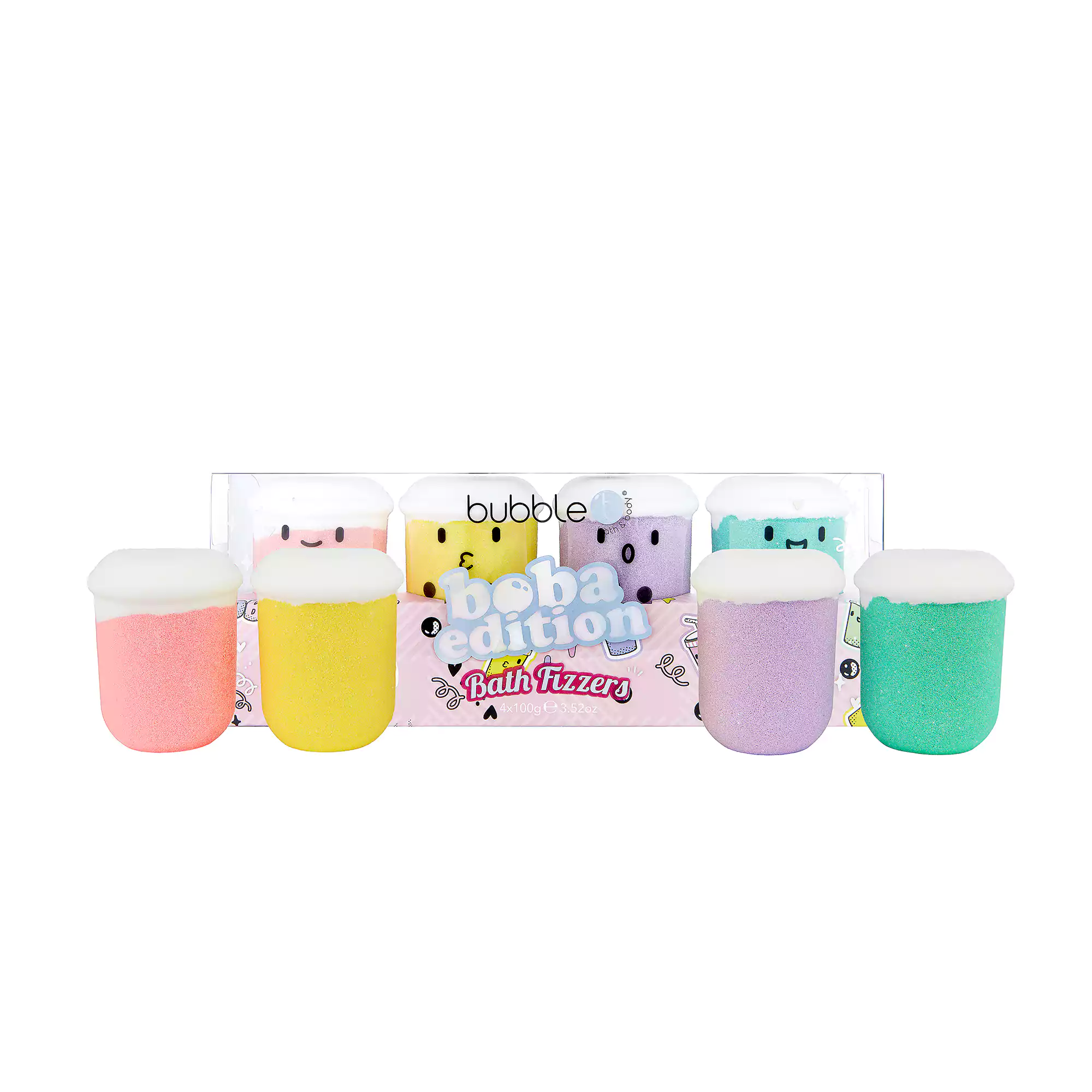 • Σετ με 4 αρωματικά bath bomb: Κάθε μία έχει διαφορετικό άρωμα εμπνευσμένο από αγαπημένες γεύσεις boba tea.