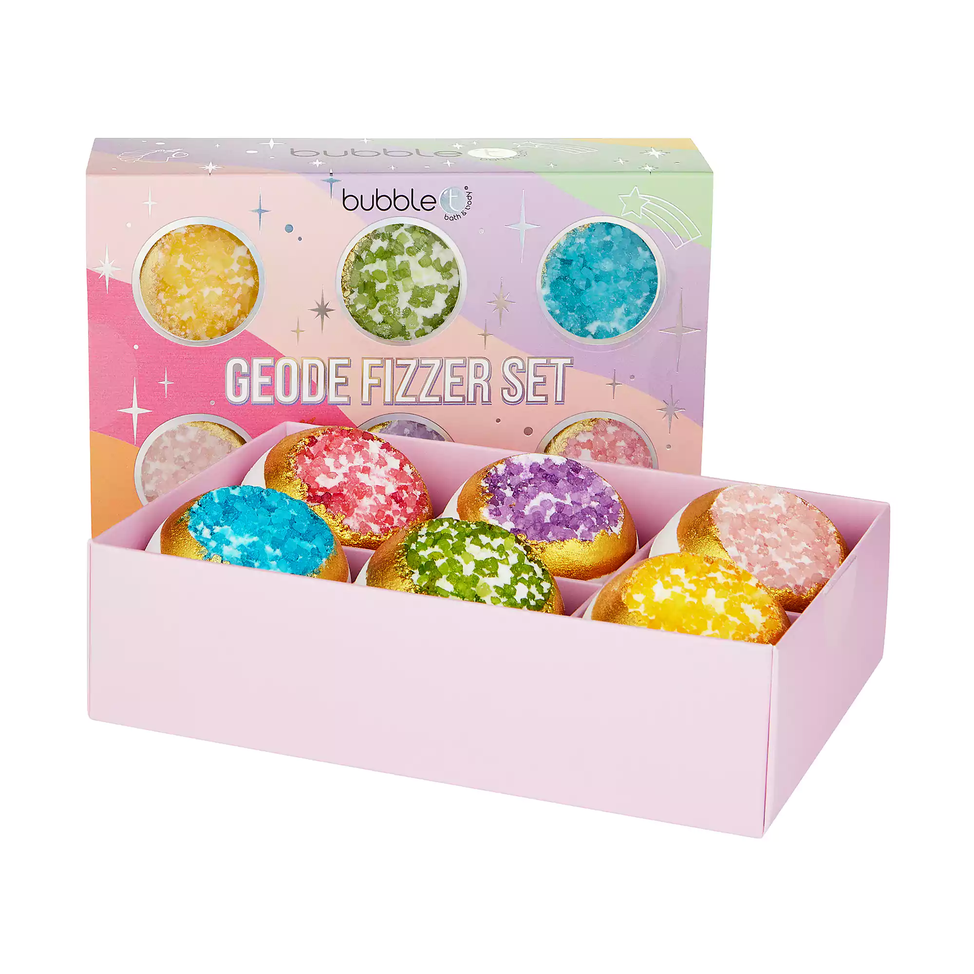 Το Bubble T Σετ Δώρου Rainbow Geode Bath Fizzer Set προσφέρει μια μαγευτική εμπειρία με κάθε χρήση!