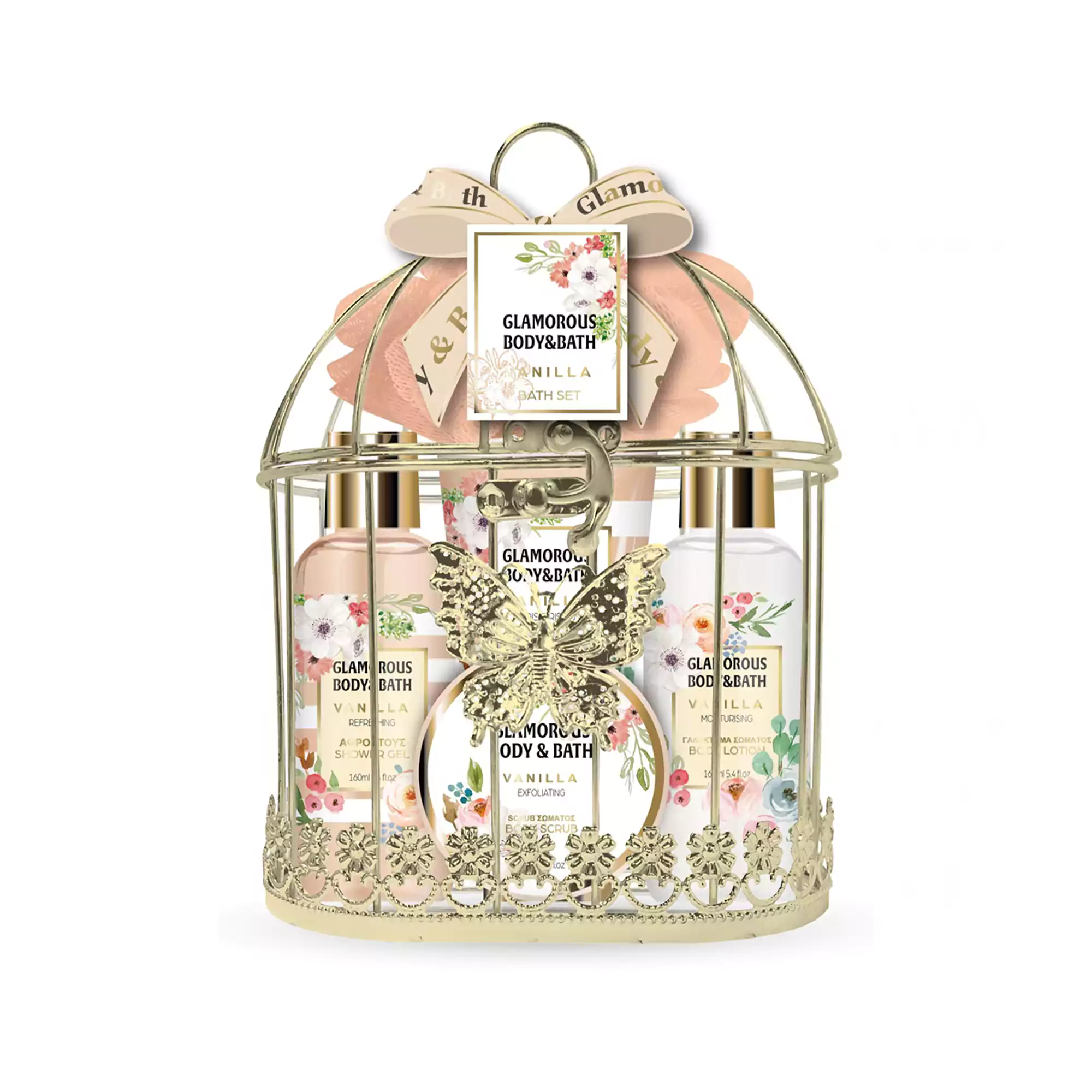 Το Glamorous Σετ Δώρου Gold Cage Vanilla περιλαμβάνει προϊόντα περιποίησης σώματος σε μια εκλεπτυσμένη βάση σε σχέδιο χρυσού κλουβιού και ένα ζεστό, γλυκό άρωμα βανίλιας. Σε κομψή συσκευασία, αυτό το σετ αποτελεί την τέλεια προσθήκη στη ρουτίνα περιποίησης σας ή ένα ιδανικό δώρο για τους αγαπημένους σας.