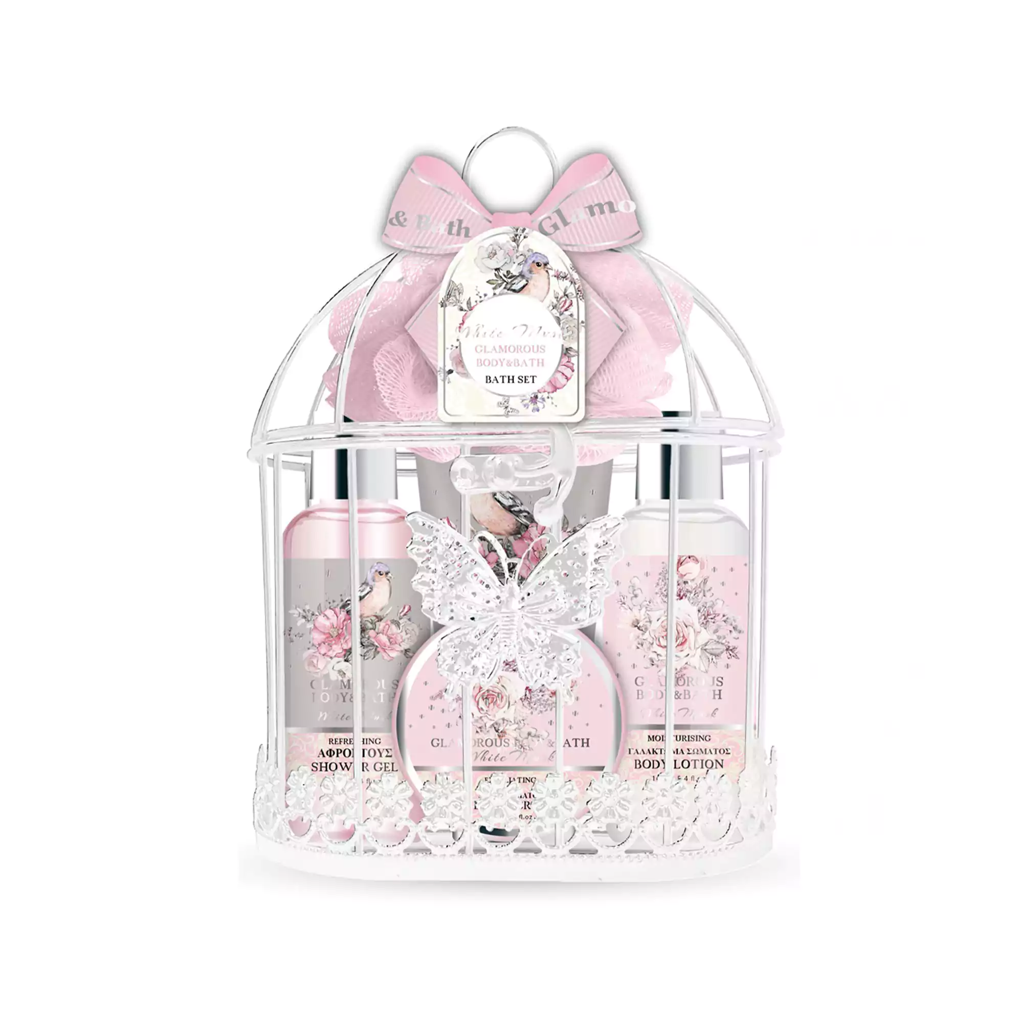 Το Glamorous Σετ Δώρου White Cage White Musk είναι ένα σετ δώρου σε σχέδιο μεταλλικό κλουβί που περιλαμβάνει προϊόντα περιποίησης σώματος με άρωμα white musk. Σε υπέροχη συσκευασία ιδανική για δώρο στα αγαπημένα σας πρόσωπο.