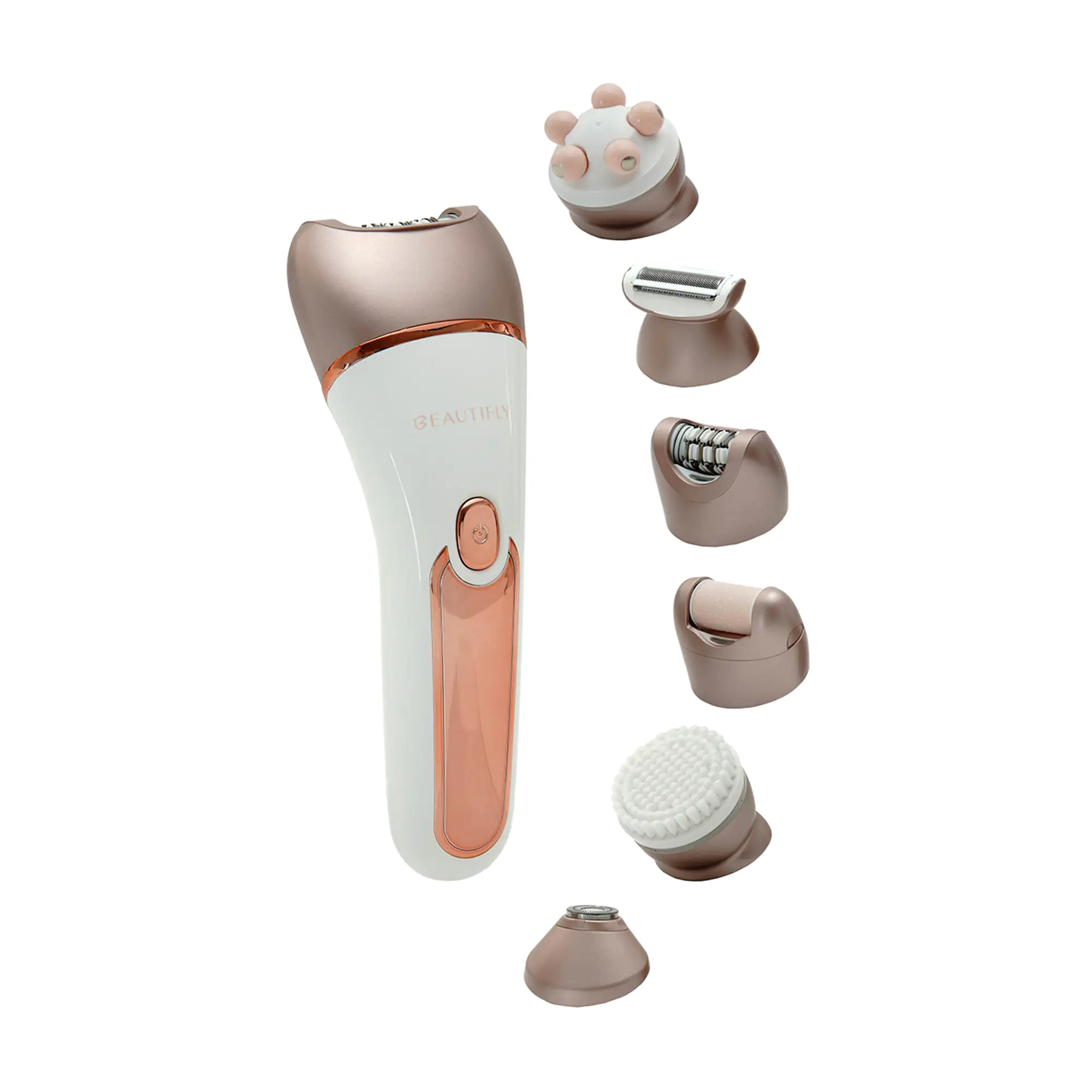 Ανακαλύψτε την 6 σε 1 αποτριχωτική και ξυριστική μηχανή της Beautifly με 5 διαφορετικές κεφαλές, ιδανική για όλους τους τύπους δέρματος.
